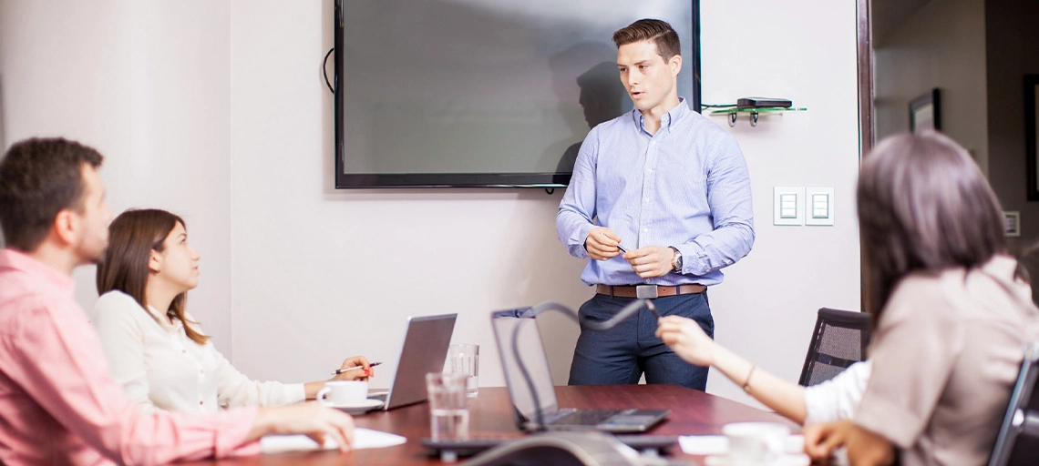 Man kann einem Kunden natürlich auch im reinen Gespräch das eigene Unternehmen schmackhaft machen, aber visuelle Unterstützung in Form einer Unternehmenspräsentation strukturiert die Vorstellung und beugt dem Vergessen wichtiger Punkte vor. Zudem stimulieren Sie somit auch visuelle Reize beim Kunden. Jedoch sind spannende Präsentationen ansprechender als das reine Durchklicken von endlosen Folienseiten. Bilden Sie selbst den Vortrag und nehmen Sie die Präsentationsfolien lediglich unterstützend zur Hand. Überfluten Sie Ihre Zuhörer nicht mit ausufernden Statistiken, sondern beziehen Sie Ihren Kunden aktiv mit ein. Sie können zum Beispiel mit Ihrer Verkaufspräsentation den Kunden herausfordern, indem Sie Thesen zur Diskussion stellen oder ihn mit Fragen einbeziehen. Besonders wichtige Folien können Sie beispielsweise austeilen und somit die Möglichkeit geben sich darauf Notizen zu machen. Vorteil: Ihr Kunde beschäftigt sich direkt mit Ihrer Botschaft und dem Inhalt.